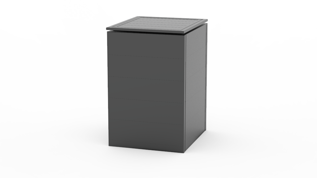 Die Mülltonnenbox überzeugt durch ihre Langlebigkeit dank pulverbeschichteten Aluminiumpaneelen. Ebenfalls ist die Unterkonstruktion in Aluminium pulverbeschichtet in Standardgrau,